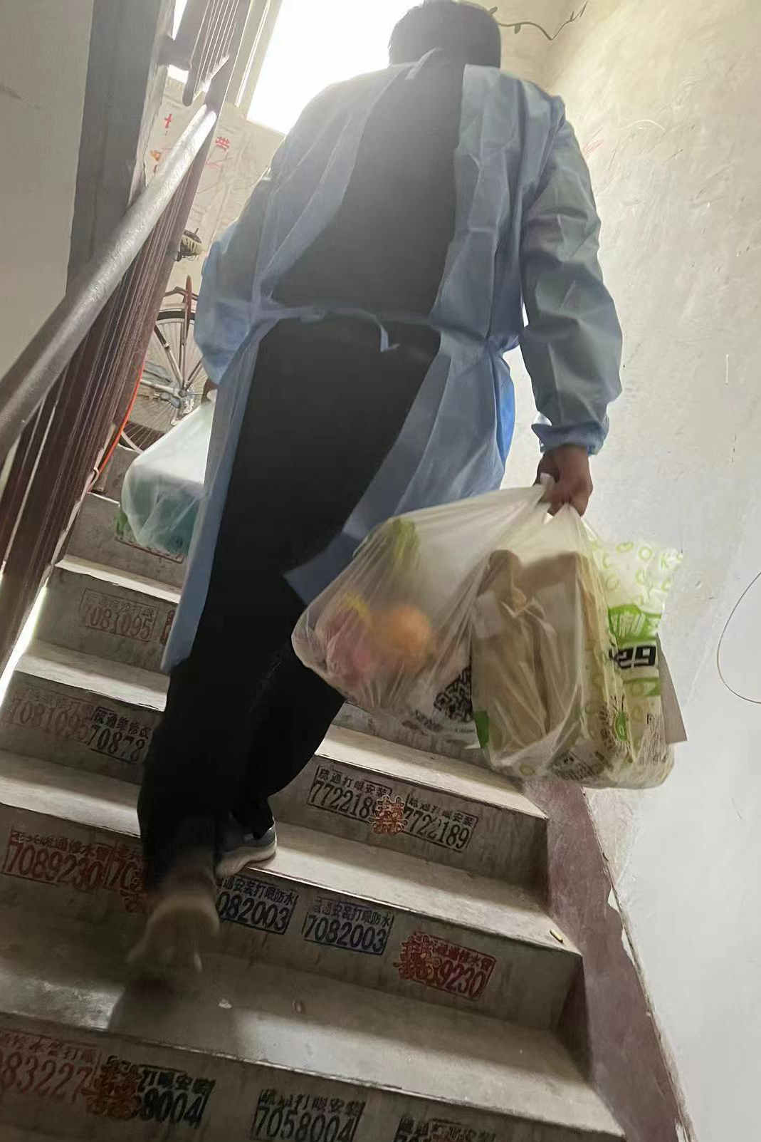 有一分热,发一分光。在经过专业人士培训和做好个人防护的前提下,他积极配合医护人员挨家挨户上门进行核酸采样,主动学习承担每日居民信息登记录入,确保全员核酸“不漏一户、不落一人”,保证核酸检测工作有条不絮地进行。当他穿着厚厚的防护服爬上六楼后,呼吸不畅、视线模糊,深深体会到了医护人员的辛苦和不易。工作顺利完成后,才发现整个防护服和衣服都被汗水浸透。这样的工作日复一日,每场核酸检测都要提前到场核对物资,协助检测人员做好防护工作,他从来没有一句怨言。
