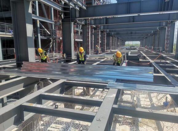 1、主厂房21.2m层钢梁安装、楼承板铺设,15.5m层楼承板铺设。
