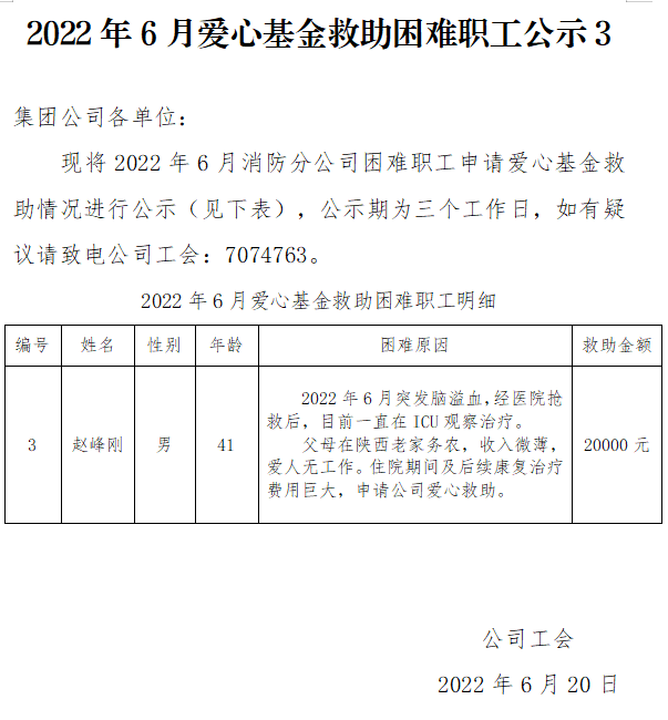 上一篇:2022年6月爱心基金救助困难职工公示2