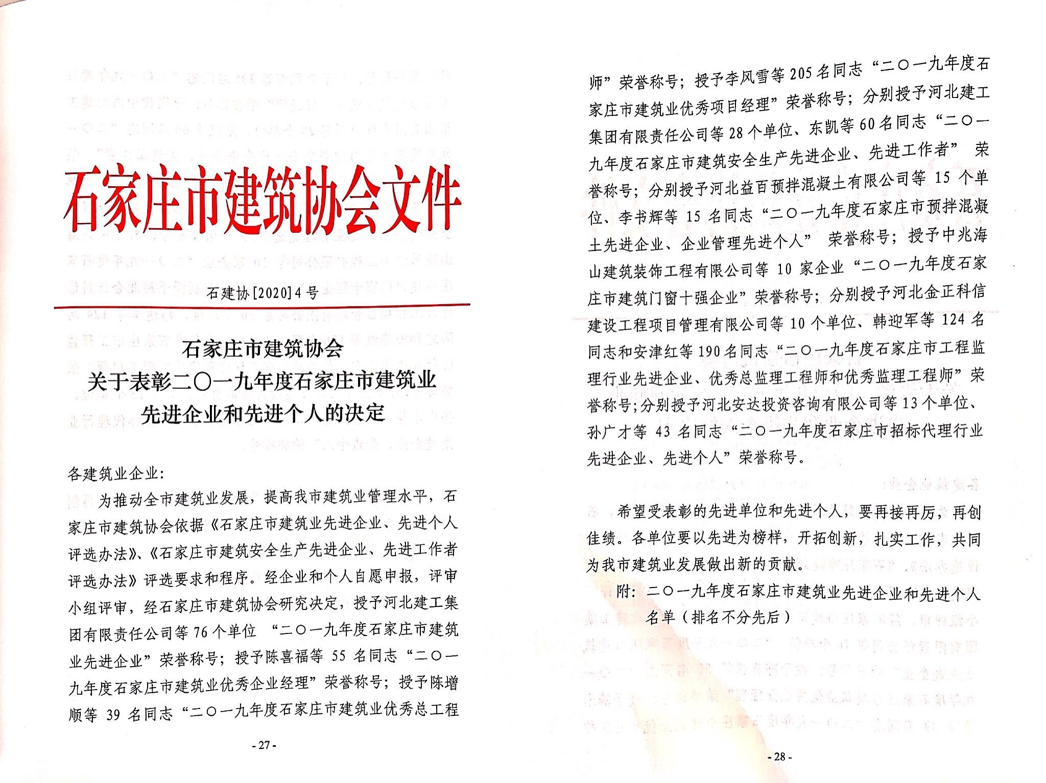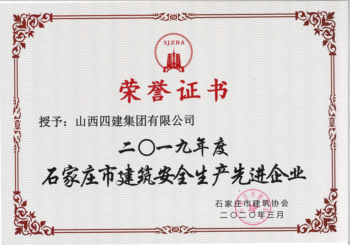 山西贝斯特bst8888集团荣获2019年度石家庄市建筑安全生产先进企业